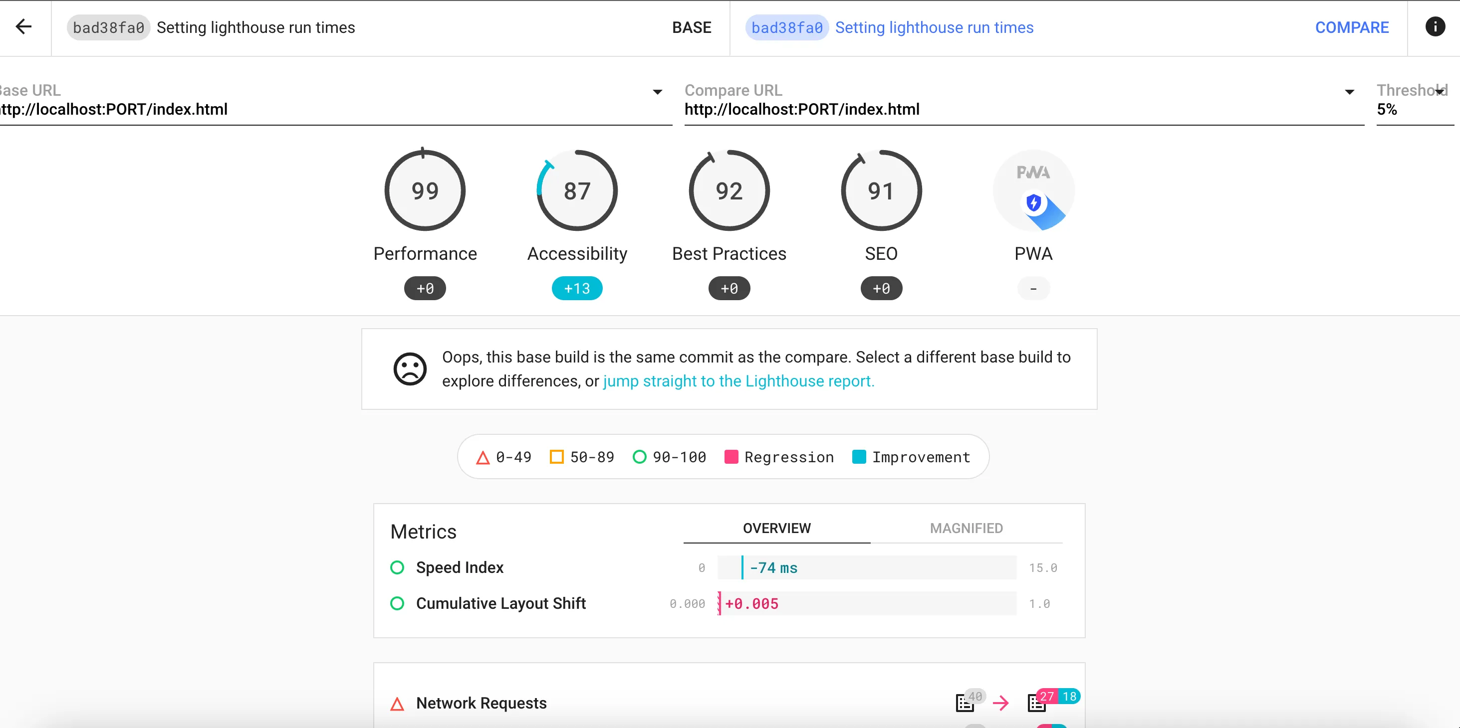 透過 Lighthouse CI Server 可以持續追蹤、比較效能指標,並且提供了一個簡易的介面,讓使用者可以更直覺的了解網站應用的效能變化,進而持續優化網站應用。