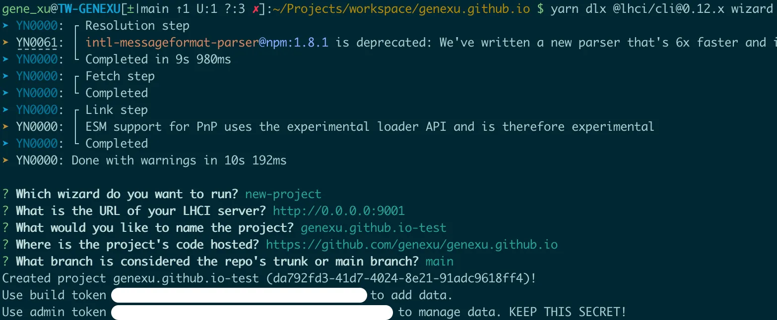透過 lhci wizard 來設定 Project,並取得 Token。